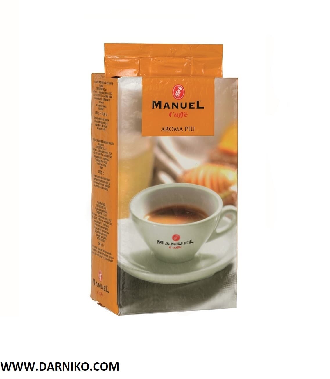 پودر قهوه آروما پیو مانوئل کافه Manuel Caffe Aroma Piu در بسته بندی پاکت وکیومی 250 گرمی محصولی از شرکت مانوئل کافه ایتالیا است.