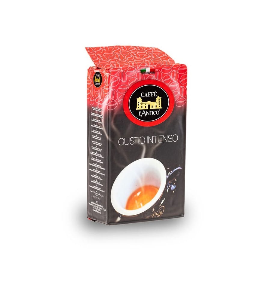 پودر قهوه ال آنتیکو گوستو اینتنسو Gusto Intenso Caffè L’antico در پاکت سوپاپ دار 250 گرمی دانه قهوه عرضه میگردد.