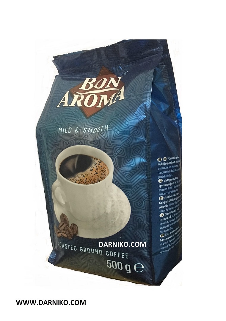 پودر قهوه بون آروما BON AROMA GROUND COFFEE در بسته بندی پاکتی 500 گرمی تولید شده در کشور لهستان است.این پودر قهوه دارای طعم ملایم و بی آزاری میباشد