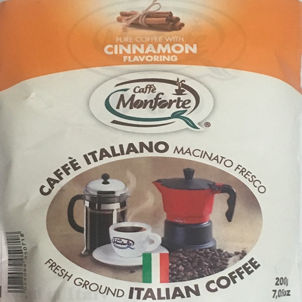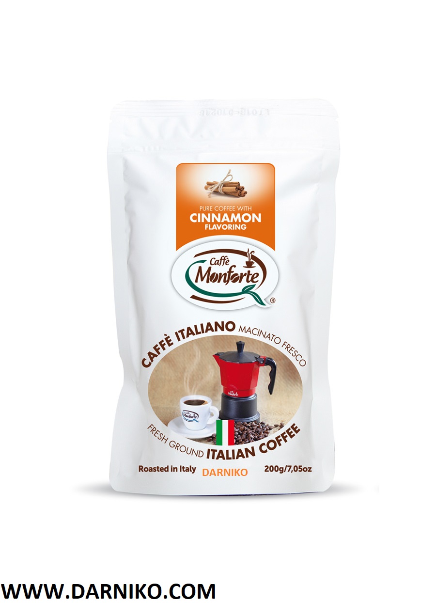 پودر قهوه دارچینی مونفورته Cafe MonForte Cinnamon Flovoring محصولی از شرکت قهوه مونفورته MonForte ایتالیا است.این قهوه در بسته بندی200 گرمی پاکت سوپاپدار پودر قهوه عرضه میشود.