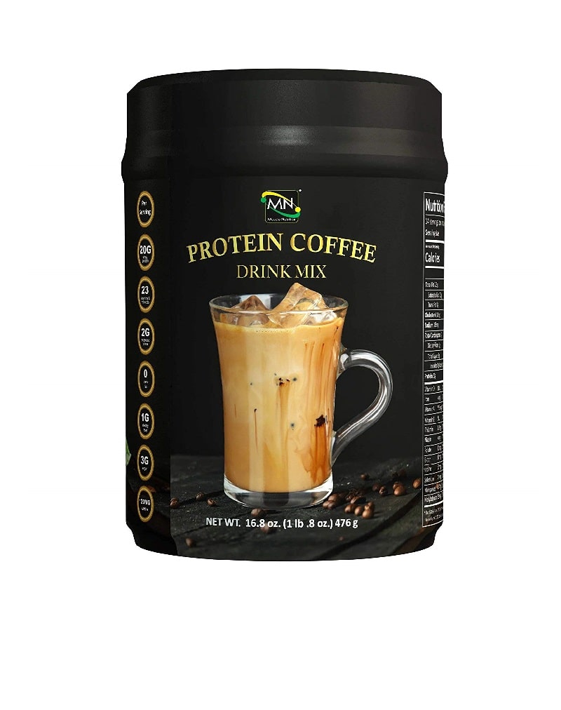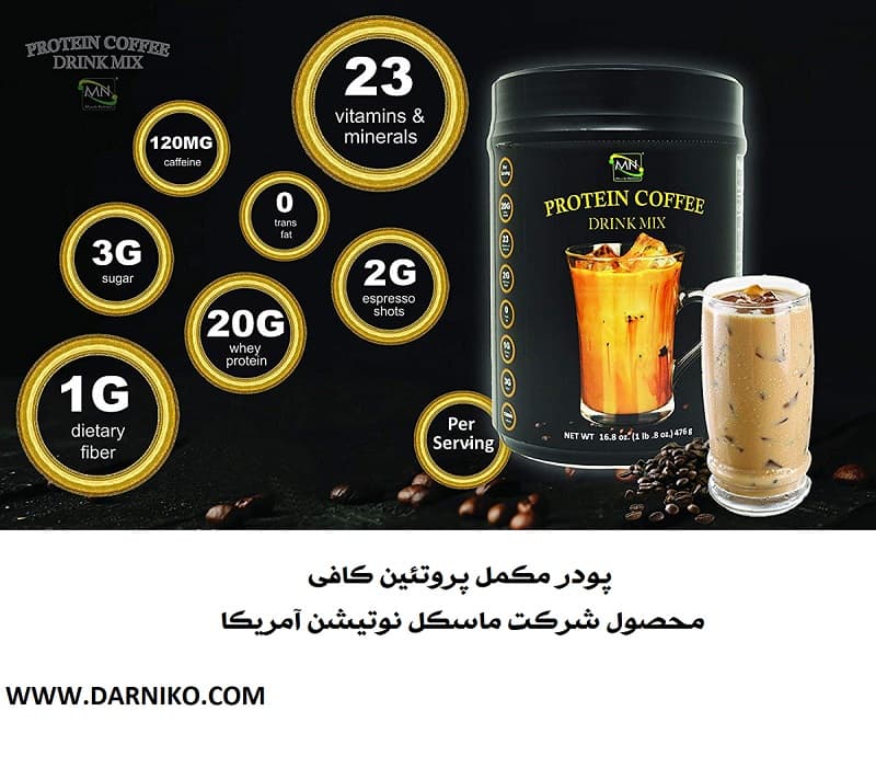 پودر مکمل قهوه پروتئین کافی PROTEIN COFFEE محصول شرکت ماسل نوتریشن (تغذیه عضلانی) Muscle Nutrition آمریکا در بسته قوطی 476 گرمی عرضه میگردد.